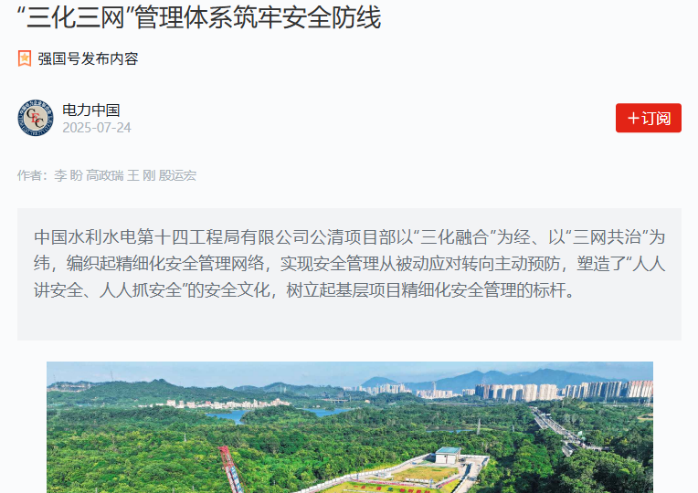 中國水利水電第十四工程局有限公司公清項目部以“三化融合”為經、以“三網共治”為緯,編織起精細化安全管理網絡,實現安全管理從被動應對轉向主動預防,塑造了“人人講安全、人人抓安全”的安全文化,樹立起基層項目精細化安全管理的標桿。 2024年8月12日,深圳環水集團組織召開安全精細化管理專題會,要求在公明水庫-清林徑水庫連通工程土建二標(以下簡稱“公清項目”)開展原水工程安全精細化管理試點。 公清項目是珠三角水資源配置工程在深圳境內配套工程之一,作為深圳市水網發展規劃“一網互聯、兩江并舉、三縱四橫”中重要的“一橫”,建成后將實現深圳90天供水儲備能力,為向中國香港應急供水創造條件。公清項目全線具有深、大、多、難的特征,具體表現為最深豎井南坑分水井93.15米、5個作業面交叉作業、地質情況復雜多變,TBM需穿越鐵路6次、下穿高速公路4條且并行約4千米、穿越11個斷層破碎帶,面臨城市施工與生態保護的雙重要求。 中國水利水電第十四工程局有限公司(以下簡稱“水電十四局”)公清項目部創新提出“三化三網”管理模型,即通過標準化筑基、網格化賦能、精細化提質,結合責任網格定崗、智慧天網固防、制度法網嚴管,形成“技術驅動+制度牽引+文化浸潤”的立體化安全管理體系,實現安全管理從“人盯人”到“系統防”的質變,由被動應對轉向主動預防,積極培育“人人講安全、人人抓安全”的安全文化,樹立起基層項目精細化安全管理的標桿。 “三化融合”驅動管理升級 一是標準化筑基,打造可復制的管理模板。 臨建模塊化。利用BIM技術生成三維可視化的場地布置圖,提前布局標準化場地。同時,從臨建階段即落實功能分區管理,如材料堆放區、加工區、通道區等,并明確標識標牌,減少交叉作業風險,實施后施工效率較之前提升約20%。 防護定型化。使用可周轉式臨邊防護系統,通過卡扣連接實現“搭積木”式安裝,實施后使單點防護布置時間最高壓縮至20分鐘。 二是網格化賦能,激活基層治理末梢。 網格化責任體系。劃分15個責任網格,建立“網格員-負責人-監督員”三級架構,網格員實施“日巡查+即時報”機制,負責人主導整改閉環,監督員獨立核查,引入重復隱患提級管理機制。 網格化流程管控。建立由28項內容構成的《安全文明施工檢查清單》,實現清單化管理,推行隱患分級整改與“日清日結”制度,實施每日安全碰頭會機制,確保問題不過夜。 網格化效能提升。目前網格化執行已形成“網格定責-清單賦能-數據閉環”協同機制,安全管理模式實現單點突破向系統治理轉型,隱患整改周期縮短40%。 三是精細化提質,構建全要素管控體系。 風險分級管控。設置地面導線及警示語,建立“紅橙黃藍”四色風險地圖,實施差異化管理策略,高風險作業監護率保持100%。 可視化管理。利用“BIM+VR”技術,通過“一張圖”對場區進行全面規劃,嚴格按圖布置作業區、材料堆放區、設施區等功能區,及時清退多余材料設備。 “三網共治”筑牢安全防線 一是責任網格,構建穿透式管理體系。 壓實全員責任。定期開展安全教育公開課、安全知識答題競賽,打破“安全即安全部職責”的誤區,推行“誰主管、誰認領、誰執行”原則,明確各職能部門的安全責任清單;安全部則重點發揮監督、指導職能,從執行者轉變為監督者、指導者。 責任落實機制。建立“周通報、月考核、季兌現”機制,將安全履職情況與績效掛鉤,通過“考核-反饋-改進”循環增強責任意識,持續壓實各層級主體責任,確保制度剛性執行。例如,南坑工區因隱患整改率低于90%,當月績效扣減10%,倒逼管理人員主動履職。 二是智慧天網,打造數字化防控體系。 立體化監控網絡。項目部指揮中心與現場終端聯動,布設高清攝像頭38個,24小時無盲區監控,實現“雙端監控”全覆蓋;引入AI系統智能識別預警,2024年累計預警違規行為235次,隱患發現效率提升40%。 雙線審批機制。實行“線上流程+線下存檔”機制,危險作業需通過線上系統提交“一表四要素”(時間、人員、地點、內容),同步留存紙質檔案,審批效率提升30%,疏漏率降至1%以下。 三是制度法網,建立剛柔并濟的治理體系。 柔性教育。實施階梯式糾偏機制,針對基層員工安全意識薄弱的問題,項目部摒棄嚴懲模式,對初次違章者實施“三步教育法”,即撰寫違章行為反思報告、抄錄安全操作規程、復述安全條例。針對高空作業、動火作業等高風險工種,根據違章類型定制教育內容、案例庫和實操培訓,培訓針對性提升50%。 剛性約束。采取分級處罰措施,對重復違章實施停工培訓,二次違章人員需停工3天并通過理論考試方可返崗。對于人員的“紅線行為”,如未系安全帶高空作業,實行“零容忍”,清退并列入黑名單,形成震懾效應,杜絕僥幸心理。 2024年,公清項目以安全促質效,將安全創新理念融入項目履約進度管理中,各工區安全文明施工水平得到顯著提升,安全文化深入人心,實現“零事故”的目標,為行業樹立了新的標桿。 水電十四局公清項目部管理團隊創新提煉的“三化三網”安全治理體系,有效解決了傳統管理中存在的責任落地難、標準執行難、風險預控難問題,實現了三個重要轉變:管理維度上,從條塊分割轉變為立體網格;技術應用上,從單點突破轉變為系統集成;文化培育上,從被動約束轉變為主動