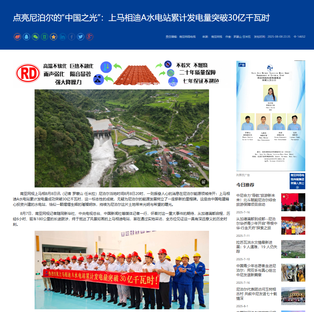 新華社加德滿都8月9日電(記者易愛軍)8日晚,由中國電建集團海外投資有限公司投資建設的尼泊爾上馬相迪A水電站累計發電量突破30億千瓦時。該水電站投運以來,持續向尼電力市場輸出穩定優質清潔的電力,有效緩解當地旱季電力緊張局面。 上馬相迪A水電站位于尼泊爾西部勒姆宗縣,為徑流引水式電站,總裝機容量50兆瓦。該項目于2013年1月開工建設,2017年1月1日投入商業運營。 據介紹,該水電站2024年發電量達3.74億千瓦時,上網電量3.72億千瓦時。電力輸送至尼泊爾首都加德滿都及第二大城市博克拉等地。 南亞網視上馬相8月8日訊(記者 羅蒙山 任米拉)尼泊爾當地時間8月8日20時,一則振奮人心的消息在尼泊爾能源領域傳開:上馬相迪A水電站累計發電量成功突破30億千瓦時,這一標志性的成就,無疑為尼泊爾的能源發展樹立了一座嶄新的里程碑。這座由中國電建精心投資興建的水電站,恰似一顆熠熠生輝的璀璨明珠,持續為尼泊爾這片土地帶來光明與希望的曙光。 8月7日,南亞網視記者隨同新華社、中央電視總臺、中國新聞社等媒體記者一行,懷著對這一重大事件的期待,從加德滿都啟程,歷經6小時、驅車180公里的長途跋涉,終于抵達了風景如畫的上馬相迪電站,旨在通過實地采訪,全方位見證這一具有深遠意義的歷史時刻。 上馬相迪A水電站,作為中國電建在“一帶一路”倡議引領下積極推進全產業鏈一體化的關鍵項目,自2013年1月破土動工,到2017年1月1日正式邁入商業運營階段,其總裝機容量達到50MW,猶如一臺強勁的動力引擎,源源不斷地為尼泊爾的發展注入澎湃動力。自運營以來,電站始終保持著高效穩定的運行狀態,年運行時長超過8000小時,每年都能為尼泊爾首都加德滿都、第一大旅游城市博卡拉等重要地區,穩定供應超過3.6億千瓦時的清潔能源,極大地緩解了尼泊爾長期面臨的電力短缺困境,成為尼泊爾經濟社會發展的堅實能源后盾。? ?在電站周邊,一位當地居民在接受南亞網視記者隨機采訪時,難掩內心的激動與感激之情:“過去,停電就像家常便飯,給我們的日常生活帶來了太多不便。自從上馬相迪A水電站建成后,電力供應穩定多了,我們的生活也因此變得更加便利和美好。真的非常感謝中國給予我們的無私幫助。”居民樸實的話語,生動地反映出這座水電站對當地人民生活帶來的切實改變。? ?據了解,上馬相迪項目公司在尼泊爾這片土地上已深耕十余年,憑借卓越的建設與運營能力,創下了令人矚目的“三個第一”:它不僅是尼泊爾首個由中資投資建設的電站,也是首個按期投產發電的電站,更是首個提前實現分紅的電站。在建設過程中,該電站全面采用中國標準、中國技術和中國設備,面對2015年尼泊爾大地震以及印度口岸關閉等諸多嚴峻挑戰,建設者們憑借頑強的毅力和精湛的技術,攻堅克難,最終確保項目順利投產,彰顯了中國工程建設的卓越實力。 生產技術部主任董江波在接受記者采訪時,自豪地介紹道:“截至目前,電站年均發電量達到3.73億千瓦時,超出設計指標3.352億千瓦時的11.3%。為了實現這一成績,我們強化了設備的全過程管控,創新性地融合了計劃檢修與狀態檢修模式,嚴格把控每一個質量關卡,定期深入分析設備運行狀態,同時加大巡檢和維護力度,全力以赴確保設備始終處于高效穩定的運行狀態。”董主任的分享,讓我們看到了電站運營團隊背后的專業與執著。 記者了解到,這座電站在過去八年多的運營歷程中,始終保持著安全穩定的運行態勢。秉持著“度電必爭、滴水必調”的精益運營理念,電站全力確保每一度電都能得到充分消納。與此同時,項目公司積極踐行社會責任,在當地大力實施200余項基建項目,并累計開展約300項捐助活動,內容涵蓋當地醫院、學校、道路、橋梁等多個民生領域,為改善當地基礎設施、提升居民生活質量做出了積極貢獻,贏得了當地社會各界的廣泛贊譽與高度認可。 南亞網視記者在專訪馬相迪農村自治市主席阿爾瓊·古隆時,他高度評價道:“上馬相迪A水電站的建成,對我們地區的發展產生了顯著的推動作用。它不僅極大地改善了當地的基礎設施條件,為居民創造了大量的就業機會,而且電站修建的隧道和大壩,如今已成為當地熱門的旅游亮點,吸引了眾多游客前來觀光。發電量的穩步提升,更是讓電力惠及全國,為尼泊爾的整體發展注入了強大動力。” 上馬相迪A水電站項目協調委員會成員納賓·拉吉·庫伊克爾接受南亞網視記者采訪 上馬相迪A水電站項目協調委員會成員納賓·拉吉·庫伊克爾在接受記者采訪時也指出:“上馬相迪A水電站項目為實現‘光明尼泊爾’計劃發揮了不可替代的重要作用,在推動該地區基礎設施建設方面成效顯著。此外,項目的實施還為當地居民提供了大量與自身能力相匹配的優質就業機會,通過充分利用水資源發電,讓地方政府乃至整個尼泊爾都從中受益,切實提升了民眾的生活水平。” 上馬相迪電站不僅是中資企業海外投資的成功典范,更是“一帶一路”倡議下中尼友好合作的生動縮影與有力見證。它如同一座堅實的橋梁,連接著中尼兩國人民的深厚情誼,在推動尼泊爾經濟社會發展的同時,也必將為中尼兩國的友好合作關系續寫更加輝煌的篇章,共同照亮兩國攜手前行的美好未來。 http://www.xinhuanet.com/20250809/857f01a2b9564d4f969da6bfc7026615/c.html https://m.sicomedia.com/index.php?controller=video&action=sh