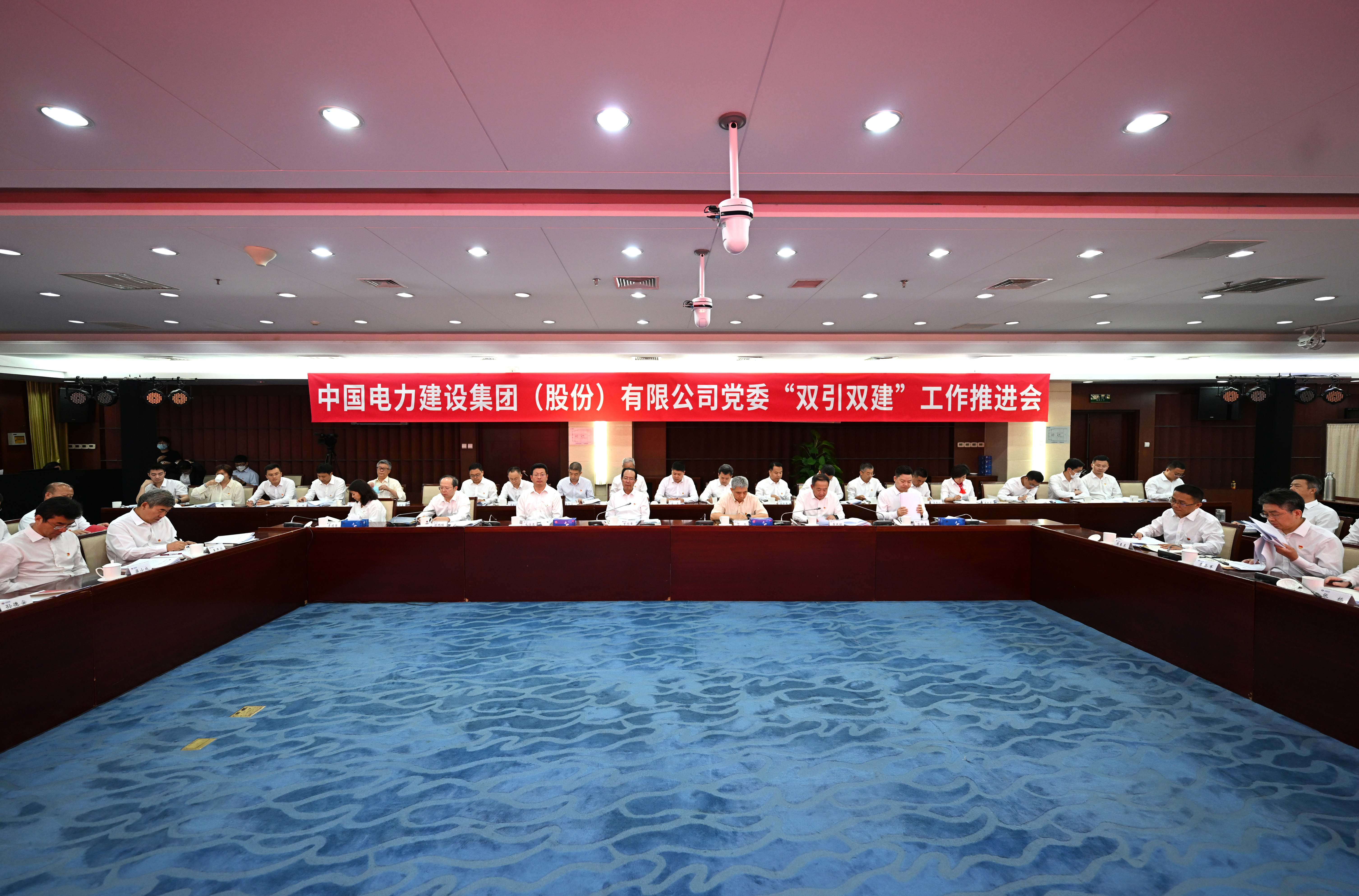 國資委黨委主題教育第七巡回指導組成員;公司高管、副總師,總部部門負責人,正處級以上黨員干部,公司黨委主題教育各巡回指導組成員;各子企業、直屬派出機構領導班子成員,中層以上黨員領導干部;三級企業、基層項目黨員領導干部等參加會議。