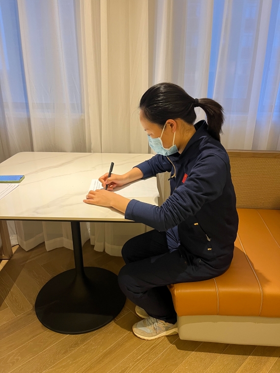 “我是全國千千萬萬個抗疫一線人員中的一個,在國家和人民最需要我的時候,也正是我向黨組織靠近的時候。前方就是戰場,我要把這次援滬抗疫的攻堅戰,當做鍛煉自己的機會,有險我先上,有困難我來扛,直到抗疫勝利!”