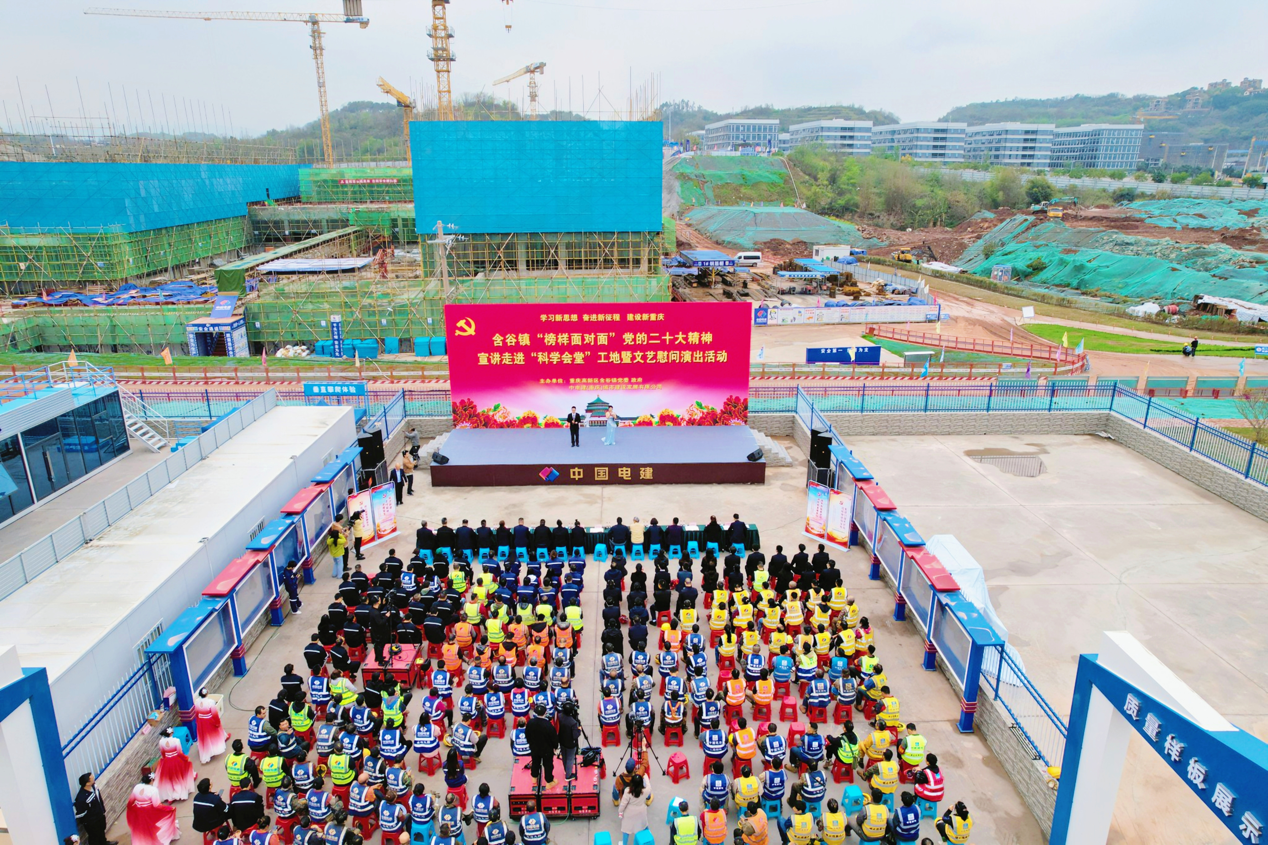 “燈火里的中國,胸懷遼闊,燈火燦爛的中國夢,燈火蕩漾著心中的歌……”一曲熱情洋溢的群舞《燈火里的中國》,拉開了重慶(西部)科學城科學會堂項目部“榜樣面對面”黨的二十大精神走進“科學會堂”工地暨文藝慰問演出活動的序幕,用建設者們通俗易懂的形式講解黨的二十大精神。 本次文藝宣講演出形式包括舞蹈、歌唱、雜技、小品,中間穿插黨的二十大精神宣講,共有《黨的二十大精神在身邊》《貫徹黨的二十大精神——讓人民群眾感受公平正義》《燈火里的中國》等12個節目,為300多名項目建設者送上了一場文化盛宴。活動現場,演職人員將黨的二十大精神融入演出作品中,通過“文藝+宣講”讓黨的二十大精神宣傳動起來、唱起來、活起來、火起來,將黨音“聲”入人心,進一步激勵全體建設者聽黨話、感黨恩、跟黨走,為高質量高效率建設項目勇毅前行。工友何清霞高興地說:“現場節目很精彩,既讓我們深入學習了黨的二十大精神,又提升了對項目建設的新認識、新知識,希望以后能經常看到這種演出和故事。”她的笑容里充滿著期待。 黨的二十大召開后,項目部根據報告提出的新思想、新論斷、新舉措,第一時間開展策劃,通過編印《黨的二十大精神口袋書》、開展“學習二十大、建功新時代”知識競賽、開展“學習感悟大家享”活動、組織黨員講紅色故事等方式宣講黨的二十大精神,有效增強了一線建設者紅色教育沉浸式體驗,打通了理論宣講的“最后一公里”。將黨的二十大精神融入為民服務和生產經營,項目部還持續在抓“引”促“建”上下功夫,切實提升黨建工作水平,穩步推進企業綠色高質量發展,把學習黨的二十大精神成果轉化為干事創業的強大動能。 “讓黨的二十大精神‘聲’入民心。”用建筑人員樂于接受的方式、易于理解的語言,將黨的二十大精神有效地傳播到了項目生產一線,為推動項目高效優質履約奠定了堅實基礎;同時,項目部將進一步創新形式載體,在豐富多樣、生動活潑的活動中引導全體參建人員學深悟透,持續推動黨的二十大精神在基層一線落地生根、開花結果。 |