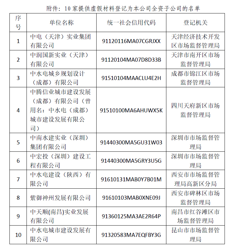 中國水利水電建設集團有限公司(以下簡稱“本公司”)為中國電力建設集團有限公司的全資子公司,法定代表人季曉勇,成立日期為1989年1月3日。在未經(jīng)本公司許可同意的情況下,先后有10家國內企業(yè)擅自將本公司登記為全資股東,他們分別是中電(天津)實業(yè)集團有限公司、中水電城鄉(xiāng)規(guī)劃設計(成都)有限公司、紫御神州發(fā)展有限公司、中天順(南昌)實業(yè)發(fā)展有限公司、中南水建實業(yè)(深圳)集團有限公司、中潤國新實業(yè)(天津)有限公司、中騰信業(yè)城市建設發(fā)展(成都)有限公司[曾用名:中水電(成都)城市建設發(fā)展有限公司]、中宏投(深圳)建設工程有限公司、中水電建設(陜西)有限公司、中水電城市建設發(fā)展有限公司(以下統(tǒng)稱“假冒企業(yè)”)。 本公司從未批準設立、收購、出資注冊上述假冒企業(yè),假冒企業(yè)進行登記注冊所使用的涉及本公司的包括:股東決議、股權轉讓協(xié)議、本公司營業(yè)執(zhí)照、公司印章和法定代表人簽名在內的所有登記材料均系偽造。 就上述事宜,本公司鄭重聲明如下: 1.本公司從未出資設立上述假冒企業(yè),我公司與以上10家假冒企業(yè)不存在任何股權關系,也不存在任何形式的出資、隸屬、關聯(lián)或實際控制關系。 2.本公司已分別向10家假冒企業(yè)的注冊登記機關進行舉報,現(xiàn)10家假冒企業(yè)均已被注銷或撤銷。 3.假冒企業(yè)以本公司名義提供虛假材料進行公司登記,本公司對此并不知情也從未同意或授權,假冒企業(yè)及其各級下設公司所進行的一切行為均與本公司無關,請社會各界提高警惕。 4.本公司嚴正警告相關不法人員,立即停止以本公司子企業(yè)名義對外開展經(jīng)營活動。否則本公司將通過法律途徑嚴肅追究相關不法人員責任,包括但不限于刑事、行政、民事法律責任,以維護本公司合法權益。 5.本公司提醒投資者、企事業(yè)單位、社會公眾,慎重與上述假冒企業(yè)及其關聯(lián)公司開展業(yè)務合作,切實防范風險。 特此聲明。 ? 附件:10家提供虛假材料登記為本公司全資子公司的名單。 ? ? 中國電力建設集團有限公司 中國水利水電建設集團有限公司 2023年6月14日 |